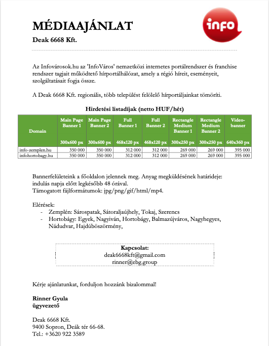 A közép banner minden egyes aloldalon megjelenik az egyes tartalmai részek között.